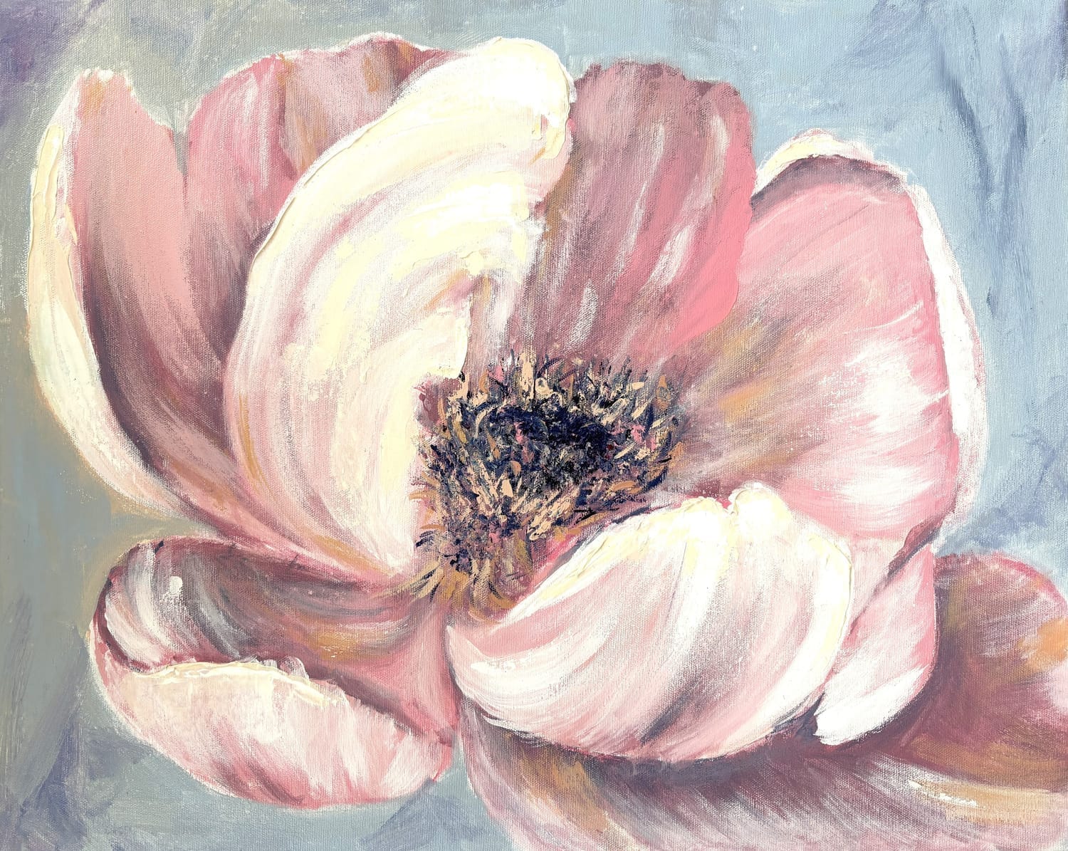 Now, I help others experience that same calm and joy through simple flower paintings that anyone can create — even if you’ve never painted before.